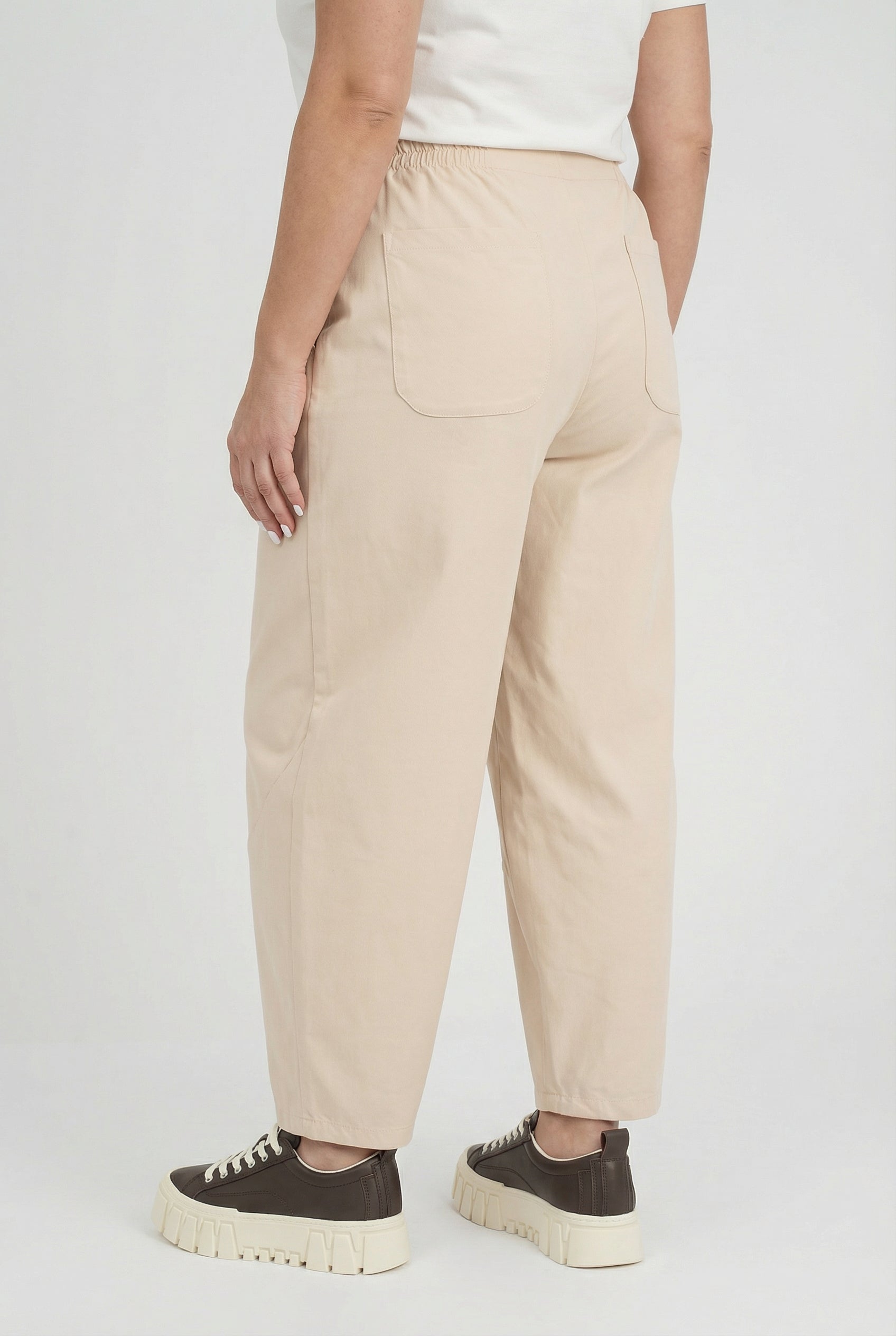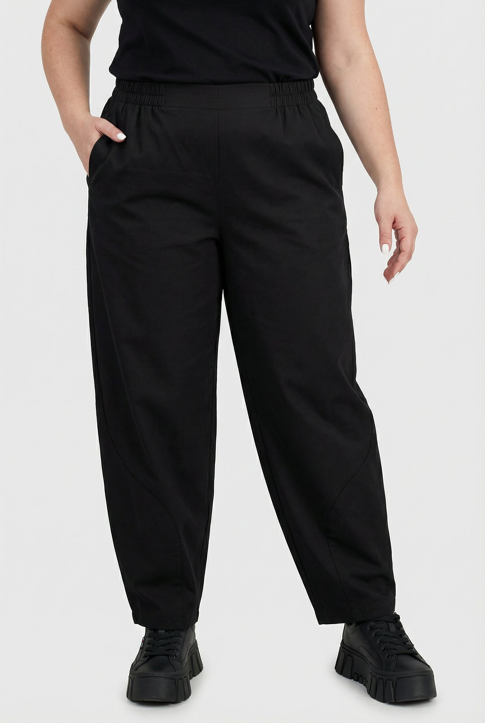Die Hose für mühelosen Chic: butterweicher Viskose-Mix, Komfortbund und eine moderne Barrel-Form, die entspannt sitzt und trotzdem stylisch aussieht.